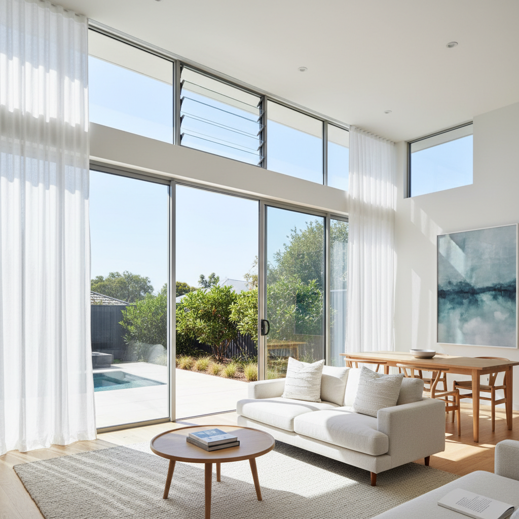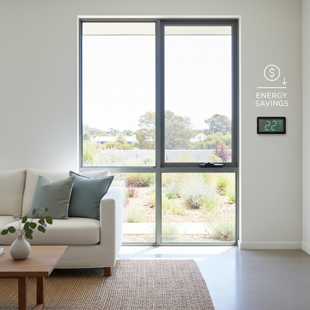 In Perth’s climate, heat gain through windows is a major problem. Single glazing allows outdoor heat to enter freely, while double glazing with Low-E glass and insulated glazing helps reduce heat from direct sunlight and winter heat gain.