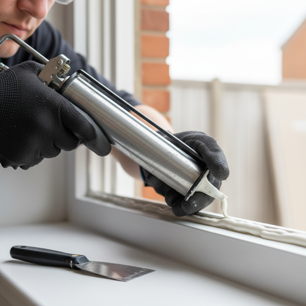 At this stage, installers may apply a continuous bead of silicone sealant to create an airtight barrier. Tools like a putty knife are commonly used to smooth edges and prepare surfaces.